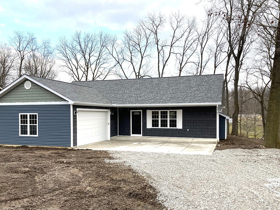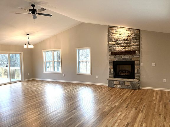 Move In Ready! Brand new ranch on large lot in the charming Village of Hartford. Right sized for moving up or scaling down. Greet friends and neighbors from the covered front porch. Hardwood floors in great room, kitchen and hallway. Carpet in bedrooms, tile in baths, vinyl in laundry/mud room. Great room has fireplace and door to rear deck overlooking the wooded back yard. Spacious kitchen has island for casual dining, custom cabinets, granite countertops, new appliances. Nice master suite with walk in closet and private bath with tile shower and double sink vanity. Two more good sized bedrooms with generous closets, and a second bath with tub/shower combo. Main floor laundry in handy mud room off the garage. Att. 2-car garage with opener and man door. Full basement. Plenty to like here.