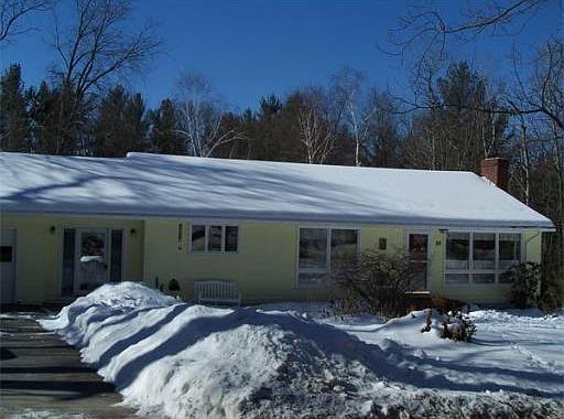 ..Country living plus easy access to highway....This three bedroom ranch has recently refinished hardwood floors, fireplaced living room opens to dining room with built in china cabinet.......great home for entertaining.....Front to back three season room which opens to the deck....Walk out lower level has recently been finished with family room with second fireplace....extra bedroom and bath with shower stall.....bay window and more...Patios in front and back yards....perennial garden, plus blueberry and raspberry bushes. Three acre lot extends back to a stream and some hiking trails New oil tank