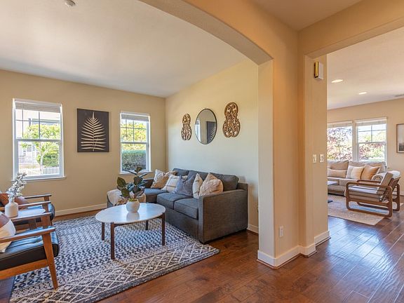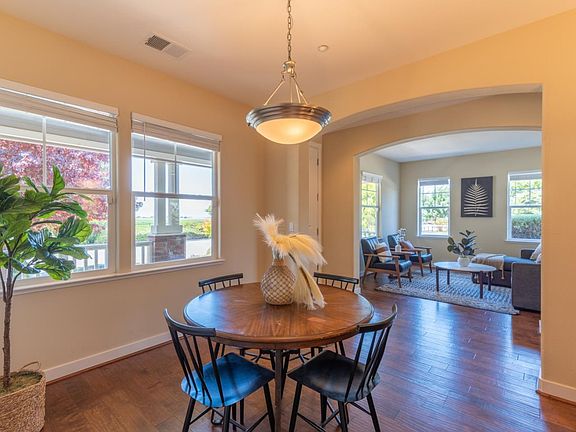 Let tranquility wash over you at this distinguished, turn-key, corner-lot property surrounded by Spreckels' bucolic views and unhurried cadence. Reminiscent of a Southern Farmhouse, this newer build's imposing design uses shady porches and copious windows to seamlessly marry the lush, manicured exterior with the spacious, well-lit interior. The versatile floor plan adapts with you to whatever life brings, providing desirable features like a downstairs bedroom, multiple dining and sitting areas, and two primary suites upstairs. Slabs of granite and a central island make a chef's dream out of the ample kitchen that also features stainless steel appliances, beautiful tilework, and endless cabinets. A charming courtyard separates the home from the detached garage and offers the ideal space in which to enjoy the organic, rural air. Newer home, stunning design, desirable neighborhood, and access to coveted Spreckels schools - look no further, this is the home you've been waiting for!