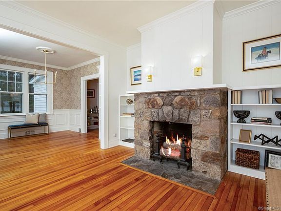 Welcome to 92 Newtown Turnpike This classic New England antique charmer blends original features such as 9 ft ceilings and newly refinished original hardwood floors, with sophisticated and modern touches. The living room boasts classic built-ins that surround the impressive original stone fireplace. It opens to a stunning, light & bright dining area where more of the original millwork is showcased. The spacious, sun drenched family room features a 16 ft vaulted ceiling and the home's second wood burning fireplace. A natural room for gatherings & entertaining, the family room walks out to a natural stone patio extending the opportunity for indoor/outdoor living & entertaining space. The updated kitchen offers a great workspace with efficient layout & also opens to the outside with the second stone patio for summer dining al fresco. The 4th bedroom is conveniently located on the main floor. Currently used as a home office, it provides flexibility to use as a study space, playroom, guest room or more. Set back from the road, the large level lot with mature plantings is a sanctuary to come home to. The Merritt Parkway is just 2 mins away making a commute to NYC a breeze. Metro North, Downtown Westport's shops, restaurants, beach, golf and much more are all within reach of a 5-10 min drive. This home sits at the 4 corners where Westport, Weston, Norwalk & Wilton converge for the ultimate in convenience and access to all 4 towns, giving it a coveted location, location, location