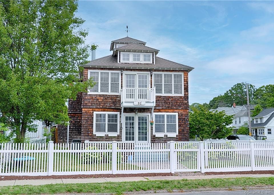 Fabulous beach house steps from the water. Wonderful year-round views of Long Island Sound from most windows. 3 bedrooms, 2 full baths, 1971 sq. ft and central air conditioning make this home the perfect beach home. The open concept living on the 1st floor includes kitchen, living room with a fireplace and French doors to a large deck and dining area. There is a full bath with laundry. There is also a flex-space that can be used as an office for those working from home or as a guest room. The second floor has 3 bedrooms all with hardwood floors. The Primary has a vaulted ceiling, 2 walk-in closets and French doors leading to a balcony with unobstructed views of Long Island Sound. There is a 3rd floor enclosed widow's walk. The views are spectacular. The lot is flat and completely fenced. This is truly a special home in a very sought-after location! The seller can do a quick close so you can still enjoy summer at the beach! Close to 95, shopping, restaurants and Yale University. House being sold "as is".