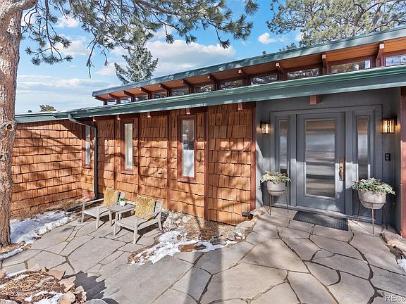 Stunning Mid Century Modern in Paradise Hills, Lookout Mountain. Truly the Hollywood Hills of Colorado! Architecturally timeless mid century flares throughout, regal beams, warm hardwoods and endless windows. Complete remodeled chef's kitchen loaded with wolf appliances and deluxe sub zero. Dynamite mixture or rare qualities in this dreamy custom 4 beds/4 bath with main level living nestled amongst the tree line on 1.14 sweeping gentle acres offering gorgeous city views & close to open space and trails. One of a kind easy flow throughout with private main level master suite with intimate deck for all seasons. Walk into wide open floor plan with newly remodeled deluxe kitchen filled with warm custom cabinetry, quartsite counters, stainless steel & custom timeless back splash. Slip into walk through large dining area & main floor living, cozy wood burning stove for all seasons, sun drenched living area is filled with warm hardwoods, hunky mid century beams and bonus wall of windows and sliding glass doors to wonderful deck area with gorgeous city views. A few gentle steps down to another entertainment area, library, media room filled with natural lights & loads of windows, offers additional access to exterior living. Lower level offers an additional bonus recreation, home office area and walk out deck, 2 additional bedrooms and full bath & a 3rd bedroom & or home office/exercise room. A rare stacked 4 car garage which is 2 story offers ample room for all your recreational and storage needs. Easy access to glorious open space and trails with zero hustle and bustle. If you are seeking location, style and condition then look no further, this home could be in the movies! Spectacular mountain living with easy access to the City. 25 min to Denver, 45 min to DIA, 60 min to world class skiing . Simply dreamy all the way around. Copy/Paste tour: https://www.aryeo.com/v2/8644c95d-f88a-4d9e-a8fe-c8f577cc76ca/videos/175210
