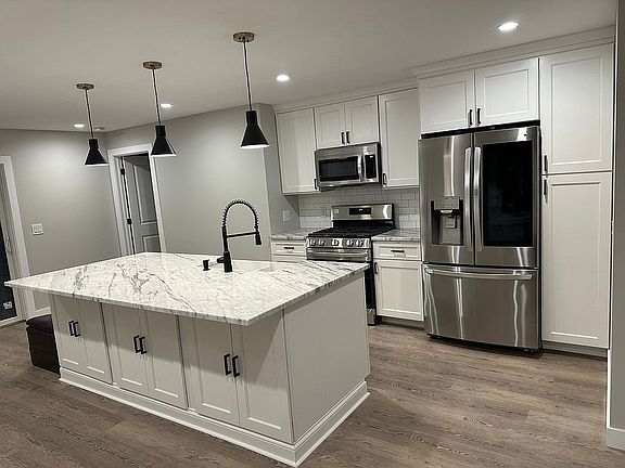 NEW! NEW! NEW! This Four Bedroom, Three FULL Bathroom Cape Cod has been renovated from top to bottom. Freshly Painted Interior and Beautiful, Laminate Flooring throughout creating a modern and coherent look, Open Concept Kitchen with Large Island, Tile Back splash and Stainless Steel Appliance Package, Main Floor Laundry, and Ample Size Bedrooms complete with Generous Closets and Ceiling Fans. Exterior Features include a Charming, Covered Front Porch, Driveway Parking and a Spacious Backyard. Note: All updates made in 2022.