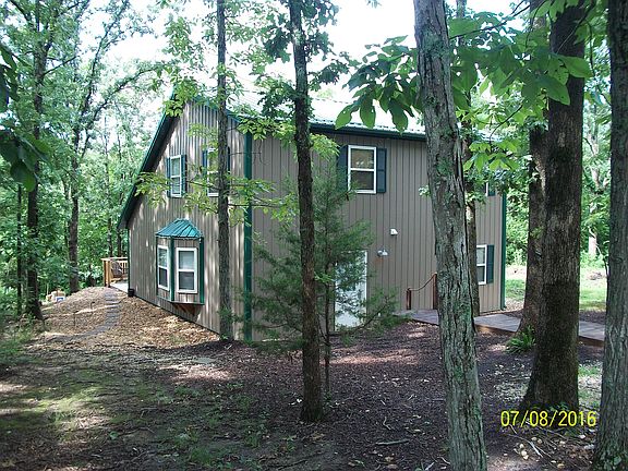 1.5 miles out of St James on hardtop setting among oak and hickory trees, 1440 sq. ft., 3 bedroom, 2 bath home with detached double car garage , completed in 2015. Heat pump, central air, wood stove, garage wired for 220, county sewer.