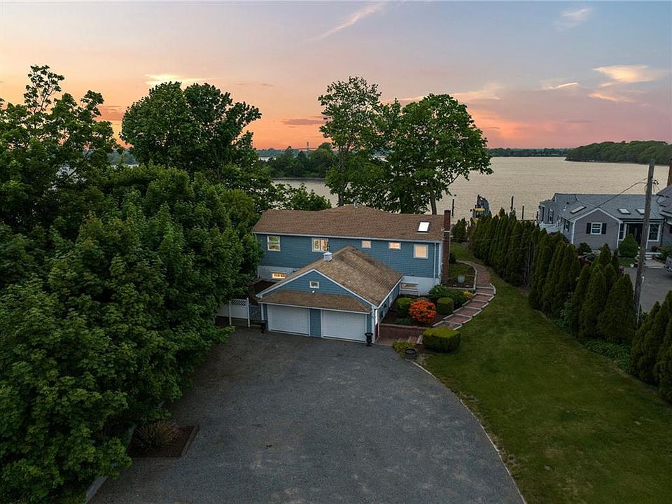 Welcome to this waterfront gem in "The Point" section of Portsmouth. This is a rare chance to own a piece of paradise nestled between the picturesque Island Park and the tranquil Hummocks neighborhood. Step inside this charming home and be greeted by the stunning hardwood floors that add an element of warmth and character. With 2 bedrooms and additional living space in the lower level, there's plenty of room for relaxation and entertaining. The convenience of a 2-car garage ensures effortless parking and storage. Step out onto the back deck, where you'll be captivated by the mesmerizing water views of Blue Bell Cove, westerly facing with breathtaking sunsets. The icing on the cake is the desirable 100 ft dock, a boater's paradise. Endless moments of tranquility and joy await you!