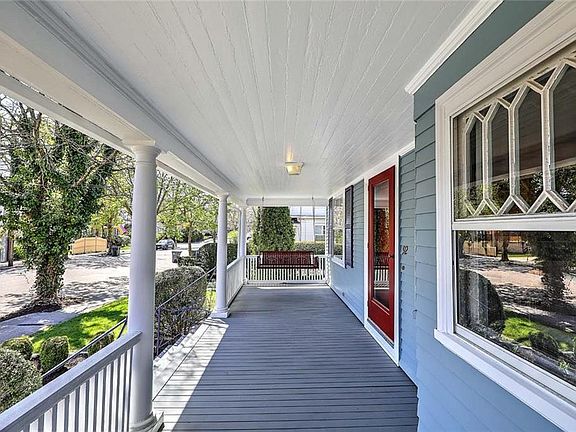 Outstanding 1900’s Colonial facing south and ideally situated on an oversized lot near Wayland Square. The delightful front porch welcomes you into the gracious living room featuring a wood-burning fireplace, lovely built-ins, and a bow window. The expansive cook’s kitchen offers quartz counters, a subway tile backsplash, a breakfast bar, all stainless appliances, and is open to the dining room overlooking the private fenced backyard. The 1st floor also offers a spacious primary suite with a luxury bath, a laundry area, a mudroom, and a powder room. The primary suite could alternatively be used as a wonderful family room. The 2nd floor has 3 generous bedrooms, a study with a fireplace, and a large newly renovated family bath. The 3rd floor provides 2 more bedrooms, another full bathroom, and lots of great storage space. Gorgeous oak and pine hardwood floors throughout, and all replacement windows. Large dry basement with new epoxy coated floor. Freshly painted both inside and out, and new high capacity gutters installed. Updated mechanicals including a 200 amp electric service, a gas Navien on-the-wall boiler providing 5 efficient zones of forced water heat and tankless hot water, and 3 zones of air-conditioning. Detached 2 car garage with automatic door openers. Professionally landscaped yard with a new stone patio. Fabulous walkable location!