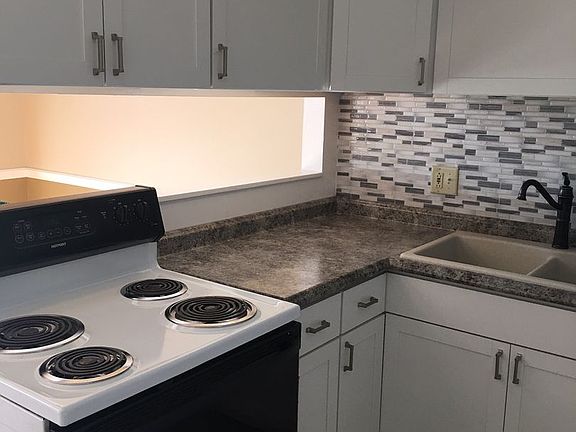 Recently renovated kitchenHard-surface flooringTile backsplashUpdated finishes