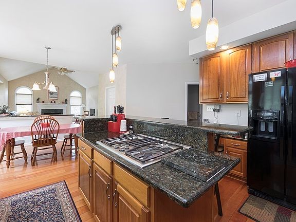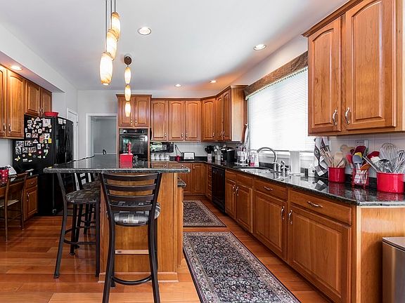 Beautiful brick front colonial nestled on a gorgeous private lot! This prestigious property is MOVE IN READY! Tons of updates, freshly painted & new carpets throughout! The entryway features an inviting 2 story foyer that leads to an upgraded kitchen, center island w/ gas range, granite counters & open floor plan to a large family room w/ cathedral ceilings & fireplace that's perfect for entertaining! Elegant formal living & dining room w/ gleaming hardwoods round out to an in home office. Large master suite w/ walk in closet. Totally remodeled master bath feels like your own personal spa w/ beautiful stone tile, granite vanity, oversized soaking tub and skylight! Large finished basement w/ walkout to a covered patio. 3 car garage. Matching custom shed equipped w/ electricity & generator hook-up. Relax and enjoy the beautiful party deck overlooking a peaceful garden oasis & private yard w/built in fire pit. Central A/C. Tankless water heater. Don't miss this 1 of a kind home!