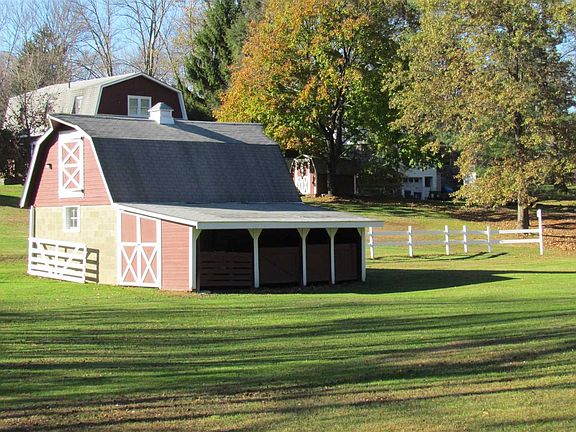 FOR SALE for the 1st time in 60 years This unique home has character and great bones, It is close to amenities but has a feeling like you are in the country & living in a swiss chalet on stunning property. This ranch home is perfectly positioned and set back off the road on 1.2 Acres of gorgeous land. Enter onto the front patio and through the breeze way - converted family room with a wood burning stove. Enter through the dutch doorway into the spacious Eat-in-Kitchen. A large living room features knotty pine walls, a cozy wood burning fireplace and Hardwood floors. The Master bedroom with His & Her closets, two additional bedrooms also with hardwood floors and a hallway bathroom. The breezeway converted family room also leads to an EXTRA LARGE room that was operated as (JOE'S BARBER SHOP) for many years. It has a woodburning stove along with the barber shop equipment still there - the room could be your home office or converted into anything of your choice. The breezeway/living room features a doorway to the rear deck that overlooks the stunning property and was once used to house horses. The red barn has a machine shed on the side & a hay loft with a Stable door. There is a 10x12 storage shed on property & an attached wood shed to home. electricity in all buildings. The home features cast iron radiators, a Gas stove for cooking (electric box to be updated to 200amp ) home is close by local shopping, I-84 & Rt-17K