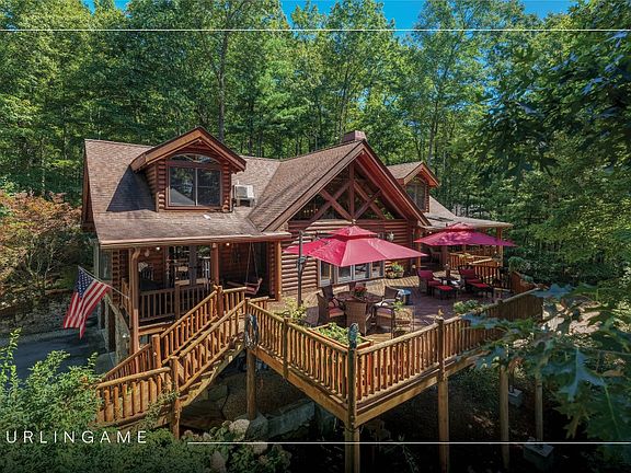 Discover the timeless appeal of mountain living in this classic log cabin on 2.28 private acres with beautiful mountain views in Burlingame Golf and Country Club. Designed for comfort and relaxation, the great room welcomes with a soaring stone fireplace, abundant natural light, and doors opening to a spacious open deck with beautiful views. A wraparound porch offers additional space to enjoy the fresh mountain air.