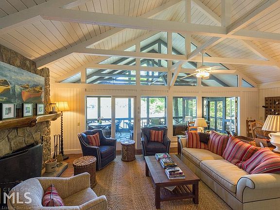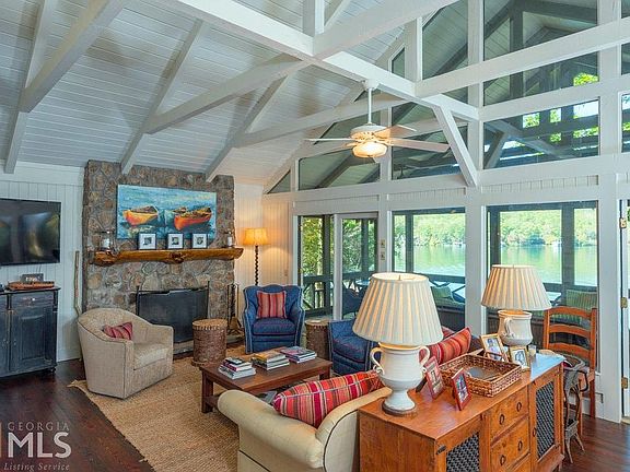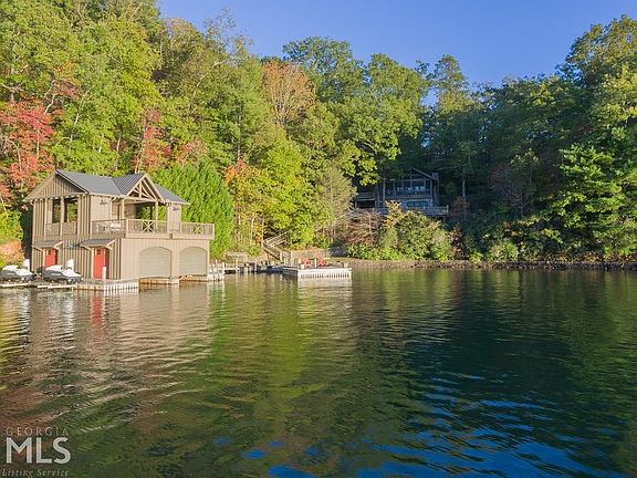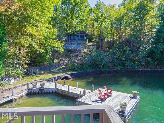 Updated cottage on private 1.16 ac. lot on main body of Lake Burton. Main floor offers vaulted family room, fireplace, dining, kitchen with pantry & full bath. Lakeside screened porch accommodates dining & lounging with sunset view and access to grilling and dining deck. Recently renovated lower level includes full bath, laundry, 2 guest suites & bunk room. First suite features a sitting room with fireplace, bedroom with lake view & access to a lakeside deck. 2nd suite offers 2 bedrooms, lake views and access to lakeside deck. A detached "bunk house" acts as a private guest suite with a pecky cyprus walls, vaulted ceiling & full bath. A fire pit, swim dock and newly constructed boat house rest in a protected cove with sweeping lake & mountain views.