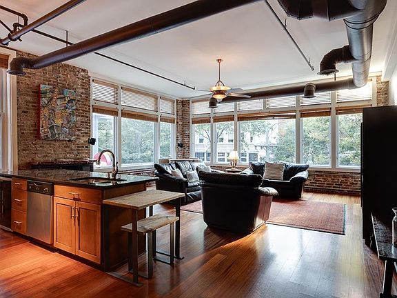 Downtown living at its best. 2nd floor corner unit full of windows overlooking historic Main Street and Barboro Alley. Everything a loft should offer with tall windows, exposed brick, and soaring ceilings. Thoughtfully designed with granite counters, stainless appliances and wine fridge. Unit comes with 1 designated parking space in the building basement.