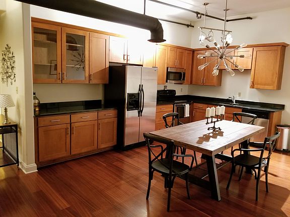 Private bathStainless steel appliancesOversized kitchenExposed brick wallsHigh ceilingsBeautiful wood flooringGranite countertops