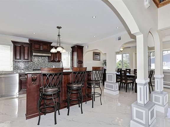 Amazing waterfront home just 8 minutes to the ocean! Newly renovated home features: expansive inviting open floor plan. dining room w wet bar, wine cooler, perfect for entertaining. Gorgeous kitchen, Cherry cabinets, Granite counters, tiled back splash, breakfast bar, top of the line appliances. Custom moldings and archways throughout, HW and Marble FLR's., gas fireplace, HWBB heat, newer 30 year roof, newer cedar impression siding, Large MBR suite, walk in closet, master bath jetted tub. Enjoy your coffee on your private balcony w custom Balusters. 2nd BR suite plus 2 additional BR. 3rd level terrace offers breath taking views of the River. Relax on your newer deck, newer vinyl bulkhead. Boaters delight just 400' from the Metedeconk River! Private beach w playground. Just so tranquil