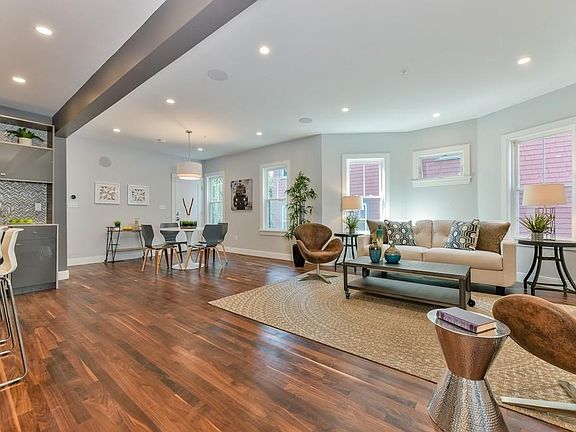 Located atop the highly sought after Jones Hill neighborhood of Dorchester. This is a complete gut renovation by a developer who pays meticulous attention to every detail. A stunning open living area, especially geared toward the person who loves to entertain. The kitchen, which faces the open living area, is complete with Fisher & Pykel appliance package, full island, custom cabinetry and wet-bar. All floors in living area & bedrooms are of gorgeous walnut wood. One guest bedroom & a master bedroom with master bath. The bedrooms are located at opposite ends of the unit for privacy. Front and back decks! All colors, fixtures and finished are designer selected, fresh and modern. Even the basement is impressive with a freshly poured concrete floor and lots of private storage. There's more: Navian on-demand hot water, Nest thermostat, Schlage keyless door lock, amazing soundproofing between floors. Close to Savin Hill T, rte 93, shopping, bars & restaurants. Open House Sunday 12-1