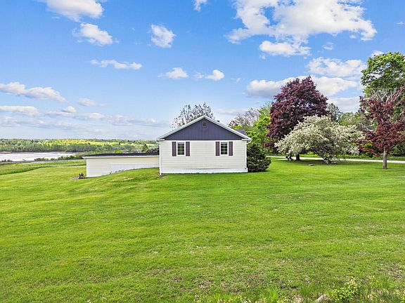 The home has three bedrooms and two bathrooms all on one level and boasts water views from the dining area of the kitchen, one of the bedrooms and from the deck. Beautiful wood floors throughout add warmth, elegance and character to the home. The kitchen is adorned with custom cabinetry. The master bedroom features an updated ensuite bathroom with first-floor laundry. A heat pump offers efficient supplemental heating and cooling for year-round comfort. Outside, a paved driveway leads to three vehicle spaces in the garages, with plentiful storage for tools and gear.