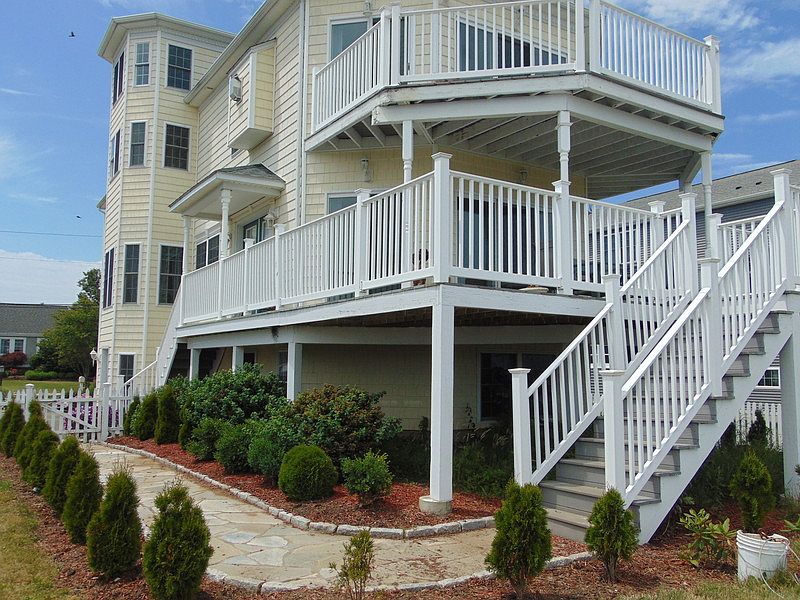 Enjoy the water views from this conveniently located shoreline home. As you enter the home, the open floor plan and impresively designed kitchen welcome you. Granite countertops, custom features, and top of the line appliances make the kitchen a joy to cook in. Entertain on the decks of this maintenance-free home as you look over an ample fenced-in backyard that offers easy access to the beach. Stroll over the footbridge to Jacob's Beach, which has recently been improved with new landscaping, a boardwalk, and kayak storage for those who enjoy the sand and sea.FEMA compliant including elevated mechanicals, flood vents, and non-absorbant insulation result in flood insurance being minimal.(Flood insurance is about $800.00 a year) Conveniently located to the historic Guilford Green, train station, nature trails, shopping, fine dining and quick access to highway 95, make this home a rare find. Public water and gas are a valuable addition.This legal six bedroom, 3 bath home includes two propane fueled fireplaces, jetted jacuzzi and an efficient Rinnai tank-less gas hot water heater. The large master bedroom has hardwood floors and walk in closet. The water views from the master bedroom are spectacular and can be enjoyed from the raised jacuzzi in the master bath.This home would make a great year round home or investment property.