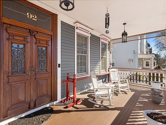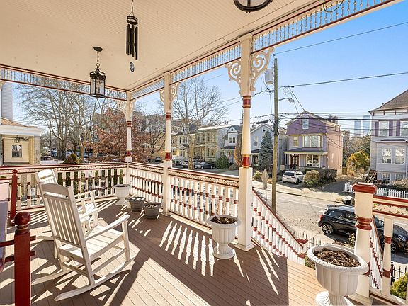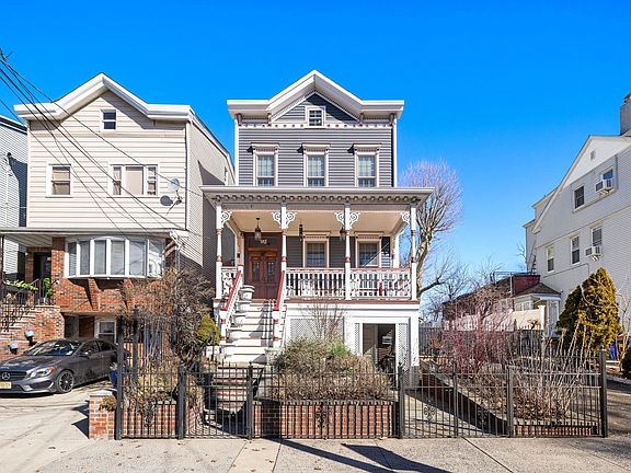 Nestled in the heart of the Sherman Place historic district of Jersey City Heights, 92 Sherman Place is a testament to grand Victorian elegance. This exquisite single-family residence boasts a sprawling 40 x 206 lot and 4,345 sq ft of living space complete with a majestic, 4 bedroom, 3 1/2 bathroom layout including the in-law suite. Automotive enthusiasts will revel in the spacious, 4 car garage, complimented by additional parking for a dozen vehicles. The home’s exterior has been meticulously restored, featuring a stately mahogany front porch adorned with intricate detailing. Imported antique doors lead into a wood paneled vestibule with a leaded glass door that opens to the main hall, revealing the original grand staircase, set against raised panel wainscoting walls, all under soaring 11 foot ceilings. The residence’s rich character is further accentuated by hardwood floors throughout and 3 stone fireplace mantles that anchor the living spaces. Entertaining is a delight in the dining room which is crowned by charming bay windows set above a built-in, solid oak wet bar and stunning Bradbury & Bradbury wall coverings. The open, eat-in chef‘s kitchen, equipped with a breakfast bar, seamlessly flows into an expansive family room. The private sanctuary of the master bedroom suite is replete with two vast closets, one walk-in, an en suite bathroom with luxurious fittings, and a private deck overlooking the serene backyard. This outdoor oasis is graced with a tranquil Koi fish pond and a rooftop garden atop the substantial 1,250 square foot garage. The garden level in-law suite adds to the home’s allure, offering a generous 1,400 sq ft of living space with one bedroom, one bathroom, a full kitchen, and a dining and living room area. This self-contained suite includes a laundry area and a separate entrance, ensuring privacy and convenience. Above, a full, unfinished walk-up attic, provides ample space for storage or the potential for additional living areas for your comfort. There is 5 zone gas heat and 4 ”Art Cool” mini split systems by LG. 92 Sherman Place is not just a home; it’s a lifestyle, unmatched in Jersey City Heights, inviting you to become a part of its storied legacy.