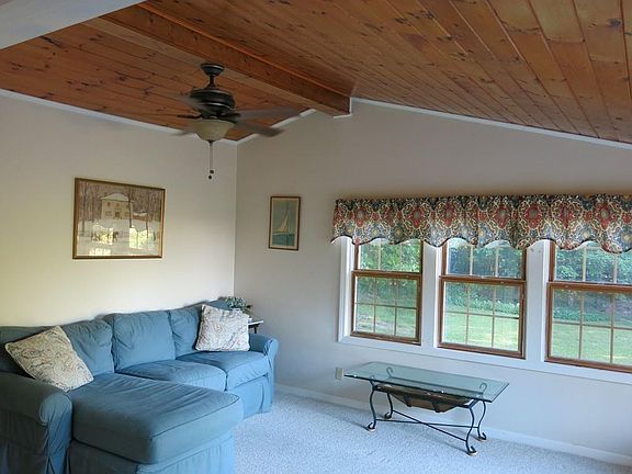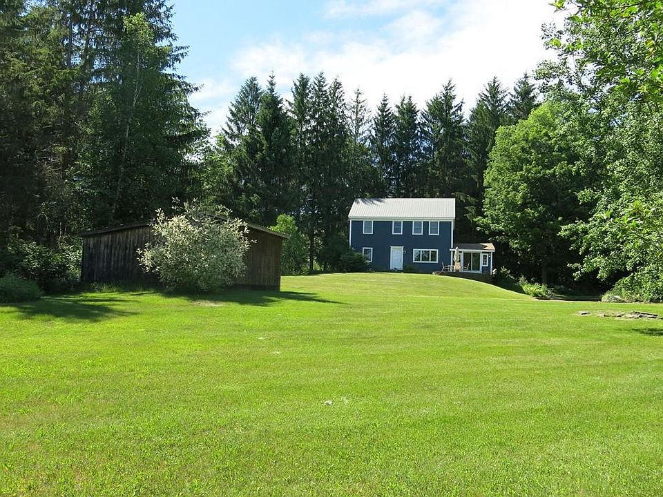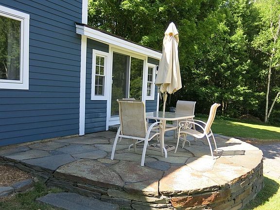 This light filled home is very private with a lovely view over a gently sloping south lawn. Lovely Goshen stone patio overlooking the property leads to sliders into the living room or family room. Spacious kitchen that opens to dining/living area. 1st floor bedroom. 1st floor bath is nicely tiled. This spacious bathroom also has the laundry machines in it. Upstairs are two more spacious bedrooms, one has two walk in closets with organizers. Lovely bathroom with whirlpool bath and a separate shower stall. Hardwood floors throughout most of the house. Mudroom off of kitchen has plenty of room for your coats and boots. Beautiful grounds with a 3 stall barn/shed. This house started its life as a ranch back in 1972 but was completely remodeled and a floor added in 2003. Newer propane furnace and hot water heater. Easy and economical to heat. 20 minutes to Northampton makes for an easy commute.