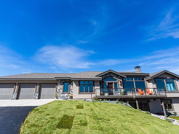 New award winning home with spectacular view. Home swept all categories in the recent Parade of Homes and is currently featured in the Fall issue of Signature Magazine. Amazing gourmet kitchen, great room and master suite. Three bedrooms on main floor with individual baths, main floor mud room and laundry. Walk out level with family room, additional fireplace, and guest bedroom and bath. Many high end features. Front and back deck with fire pit.