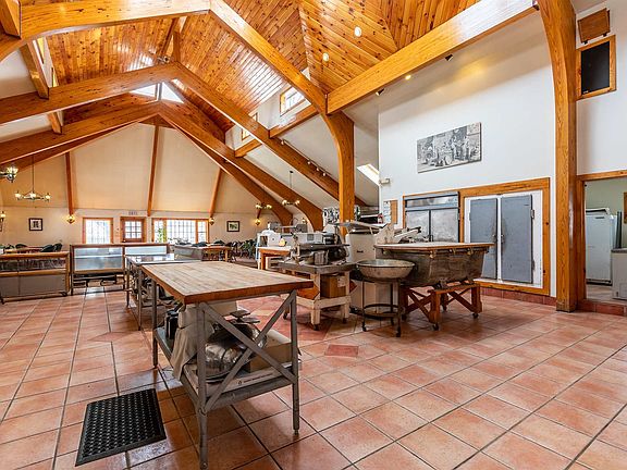 Built and operated as a successful retail/eat-in bakery/cafe for 20 years, this fascinating structure on 3.5+/- level acres offers possibility for use as a full time residence with a home business, or, with further modification, a unique and spectacular full time home. The amazing cathedral like structure was built in 1997 on an old homestead and attached to the barn which dates back to 1850s. The entire interior is connected and finished as one seamless space. There is a 4-flu chimney which could be made into a beautiful stone fireplace. The open floor plan could be redesigned for living space. The possibilities are endless. 4 bathroom spaces are in place with two half baths to code for public use and two more bath areas with a walk-in tiled shower. A home business such as a dance studio, music space, or any form of retail business would work very well with flexible options as to where the business entrance would be. Walking distance to town, adjoins town rec area. 2021-05-22