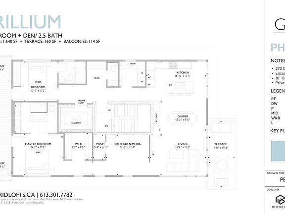 The Grid Lofts are situated downtown just a few blocks from Bayview Station (LRT) and the Ottawa River Parkway. There are 3 nearby parks, Farmboy, many trendy restaurants and shops in nearby Hintonburg, Wellington Village and Parliament - all within walking distance. This stunning 2 bedroom, plus large den, 2.5 bath Penthouse suite boasts 10ft ceilings, 2 large balconies, plus a private terrace overlooking a downtown church and park, ensuite elevator, and gas fireplace. Fisher & Paykel appliances including gas range and integrated fan hood, refrigerator and double-drawer dishwasher. Covered parking included. Condo fees include insurance, elevator maint, bldg maint, snow and landscaping.
