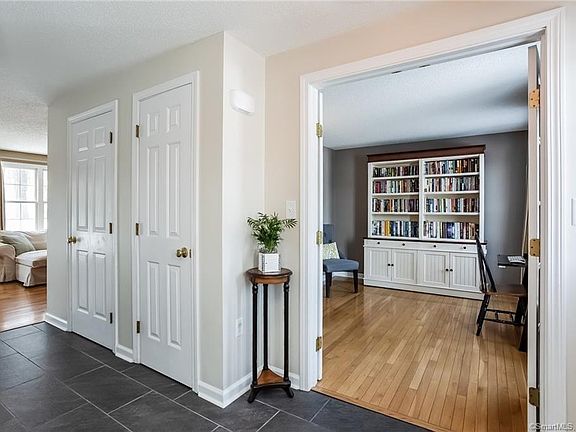 A Spice Hill beauty Lovingly cared for 3 bedroom, 2.1 bath Colonial in sought after neighborhood. Hardwood floors throughout both main level and second floor. Eat-in kitchen with granite and newer stainless appliances opens up to living room with wood-burning fireplace. And 2 large pantry closets give you plenty of storage space. Spacious master bedroom has a large walk-in closet, full ensuite bath, and convenient laundry located within a separate closet. 405 sf of additional finished living space in the basement -- great for a media room or playroom. Plenty of additional storage space in basement and pull down floored attic gives you even more storage Level backyard has a redone 16x16 trex deck that opens up to a completely fenced in yard with shed. And with a convenient location close to town, there is no better spot to call home