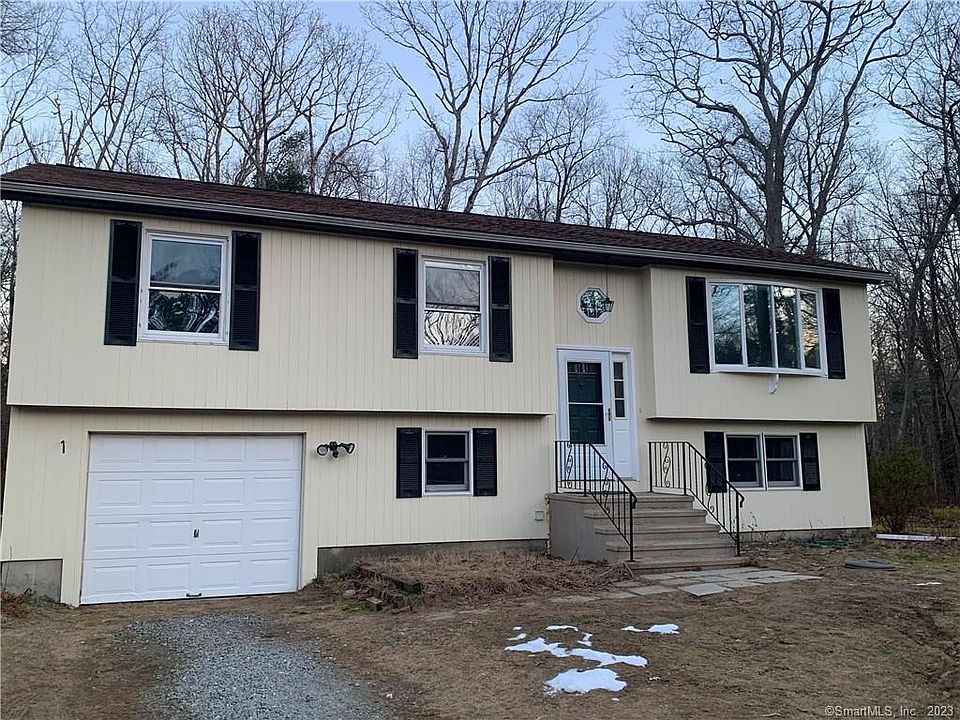 Welcome to your crisp and newly remodeled open floor plan home. On entering this lovely split level, you will immediately feel welcomed into the light-filled living room with bow window and beautiful kitchen and dining area. New white Shaker cabinets, stainless steel appliances and quartz counters make this kitchen with island a perfect place to entertain or cook for yourself. The deck off the dining room would be a great place for a grill, and it has a view of the many acres of conservation land that abut the rear of the property. The bedrooms all are freshly painted with new carpeting and have separate thermostats for maximum comfort and efficiency. The newly renovated master bath features a lovely designer-tiled herringbone pattern shower. The full bath is also newly tiled with new fixtures as well. You have additional space in the finished and heated, ground-level basement, which also has a wood stove for additional coziness. There is a full laundry room waiting for your customization and additional storage on the lower level. This is a lot of house with a lot of thoughtful and custom upgrades at this price. Close to the fun and quirky Stafford Springs downtown area and to UConn.