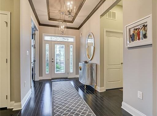 No need to Wait for Bowan Model to be built. 2 Year young exquisitely upgraded home on premium location backing to wooded area. Bluestone paver walkway w/lavish landscaping. Open floor plan w/soaring ceilings. A true gourmet center island kitchen w/state of the art appliances & exquisite stone counters, 42 " custom Cabinetry, subway tiled backsplash, wine cooler & double oven Adjacent breakfast area offers an open view of the great room w/designer tile surround fireplace & sun room option Elegant dark stain hardwood flooring thruout most of the home. Dining room features tray ceiling. Spacious office with Palladium windows. Expanded master bedroom suite with sitting area, tray ceiling, 2 walk in closets. Spa like master bath with whirlpool tub, frameless shower with designer tile and dual sinks. Audio speakers thruout the home.Private back yard with Bluestone patio and fire pit. Professionally decorated. This home is not to be missed! Simply a Must See!