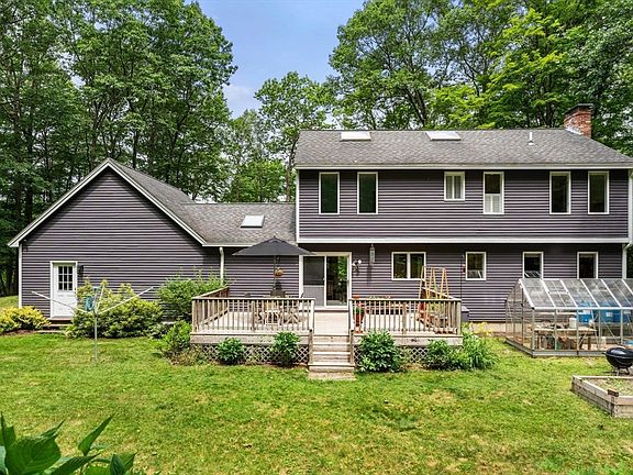 This charming 4-bedroom, 3-bathroom Garrison Colonial at 92 Townsend St offers exceptional living in desirable Pepperell. The home features beautiful hardwood floors throughout the first level and a striking front-to-back fireplace as the living room centerpiece. The additional family room boasts impressive vaulted ceilings, while the stunning eat-in kitchen with peninsula provides the perfect gathering space. Four generously sized bedrooms occupy the second floor. Outside, enjoy extensive gardens, a greenhouse, and a large back deck ideal for entertaining. Natural light flows throughout this quality-built home. The property is perfectly positioned near Minute Man Park and Pepperell Springs Conservation Area for outdoor recreation, plus Townsend Hill Wildlife Management Area for nature enthusiasts. This new listing combines comfortable living with excellent outdoor amenities.