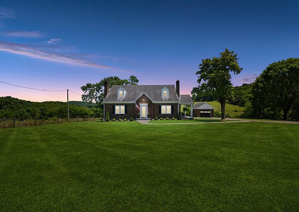 MOTIVATED SELLER!!! UNRESTRICTED Charming Cape Cod 3 bedroom brick home w/ primary BR on main level surrounded by large acreage farmland on 1 acre lot. Located w/in 1 mile to Cordell Hull Dam/Cumberland River access park and close to Defeated Campground & lake. So much character and they just don't build them like this anymore. Featuring 2 fireplaces, hardwood flooring, eye brow arch entrance to dining room, fresh paint, newly painted cabinets & hardware, built in china cabinet, white farmhouse porcelain kitchen sink, massive pantry, replacement windows, new light fixtures, living room and den, built in telephone stand, spacious bedrooms, side covered porch, detached 1 car garage, 2 bay shed. Upstairs bath has ample room for soaker tub and shower to be added. Sunroom/laundry w/ own entrance. Tons of storage space and a full basement . MOVE IN READY!! Within 1 mile to town. Don't miss this opportunity!
