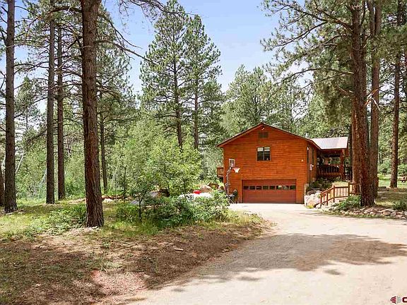 Your mountain retreat in the tall pines on 4.8 forested acres awaits! Only minutes away from Lemon and Vallecito lakes, with Wilderness access close by and miles of nearby trails to explore. This well maintained 2352 square foot cedar sided home in Los Ranchitos, (12 miles Northeast of Durango) features two master suites on the main level, an updated kitchen, a living room with a wood-burning stove and plenty of storage. The finished basement is a bonus with a walkout two car attached garage, a 3/4 bath, and laundry room. Recent upgrades to this home include new hardwood floors, light fixtures, and window coverings. Enjoy meals at the table under the covered deck in front of the house. Take a short stroll from the main house over to a well maintained detached 576 square foot one car garage/workshop with a finished office/studio above, with its own driveway access, plenty of room for all your extra toys! This home and property are priced to sell, make an appointment today to see for yourself.