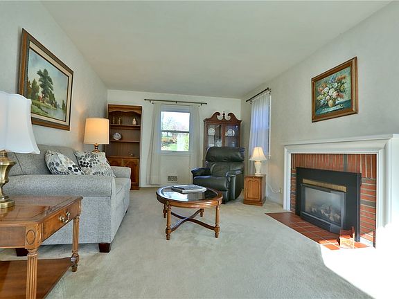 Welcome Home! This wonderful colonial is set on a quiet street in East Irondequoit. The living room boasts a gas fireplace, perfect to cozy up to in the colder months. The eat in kitchen offers newer stainless steel appliances, beautiful wood cabinetry w/ slide out shelves, and easy access to the outdoor living space. Enjoy the Family Room off the kitchen featuring a large Skylight and additional access to the deck through glass doors. Entertainers dream set up! Plus, a 1st floor half bath in the entry for added convenience. Partially finished basement w/ plenty of storage, great entertaining or additional living space. Possible work-out room, Office & Rec Room* 2nd floor w/ hardwood floors * under all carpet * that carry through all 3 spacious bedrooms and hallway to the full bath. Fall in love with the gorgeous backyard offering a peaceful and private space to entertain. Connecting decks off the exterior doors and plenty of space for the whole family! Convenient location to 104, shopping, dining, schools and more.