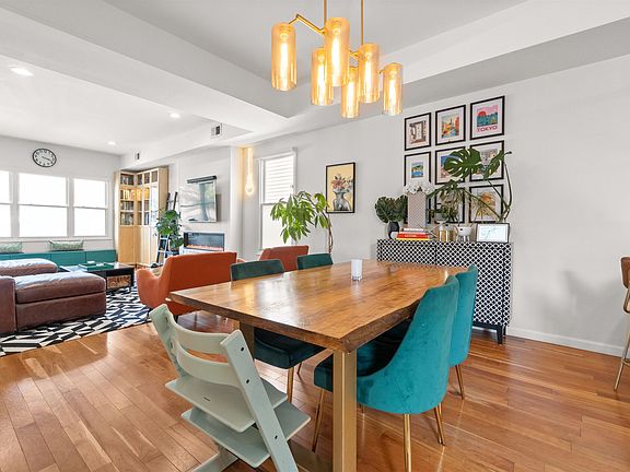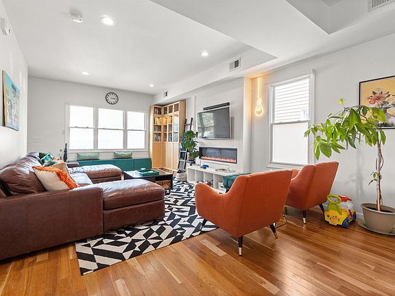 More spacious than it looks from outside' this lovely home offers a modern, open layout so suitable for your busy lifestyle and makes entertaining easy! A well-equipped kitchen features a full suite of Stainless steel appliances , plenty of cabinetry and wide granite counters and prep space. A built-in electric fireplace provides a lovely ambiance to the Living and dining rooms. Your upper floor holds generously sized bedrooms, full bathroom and even the laundry - so convenient! The primary bedroom is your special retreat with a private outdoor deck overlooking the backyard - a great spot for a quiet moment at the start or end of a busy day. Some of the upgrades include a roomy guest half bath just inside the back door, custom automatic window blinds, and custom storage systems in the walk-in closets. The fully finished walk-out basement is a versatile space, boasting an open floor plan with a kitchenette, living room/playroom and another full bathroom. Parking for two or more cars is right out front. Situated just blocks away from the 8th Street Hudson Bergen Lightrail Station, you’ll have direct service to NYC. Additionally, you will find an array of shops, restaurants, and major highways in close proximity.