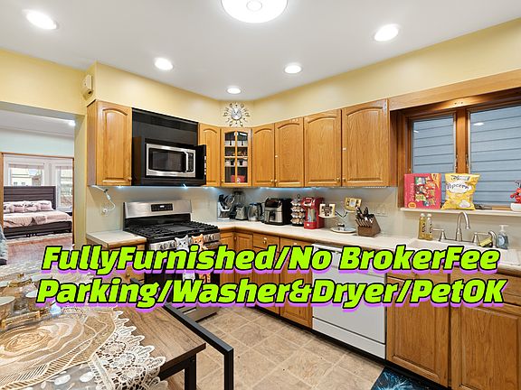 Open House: 6-7pm Weekdays. This fully furnished 2.5 bedrooms apartment is on 2nd floor of a multi-family house, all ads photos are accurate, and all furnitures and appliances are included in the rent price. Pls phone sms me anytime or call only between 1pm to 8pm to view the house, Cell: 917-204-91fivesix. Private House for Rent By Owner, No Broker Fee, Small Pet Friendly, 1 year lease renewable, No Airbnb. In-Unit Washer & Dryer, full-size Eat-In kitchen with fully equipped appliances. Two furnished bedrooms both furnished with queen size bed, and master bedroom is a mother-daughter suite with an extra bonus room with a closed door, totally 2 and half bedrooms, for No more than 5 people. Mandatory fee: extra $100/month water In-Unit Washer&Dryer usage. Tenant pays electric and gas. Optional fee: $75/month assigned shared driveway parking. Or Free Street Parking. 1 year lease renewable. 1 and half month security deposit. $30 per adult credit check fee, must have No eviction No bankruptcy. Strictly No Airbnb, No Subleasing, No Smoking or drug anywhere. Pet fee on per pet basis, pet photo needed for approval. 11 minutes drive or train to NYC Manhattan New York City, this beautiful House with fenced backyard is in a quiet and children-safe neighborhood in Uptown Bayonne NJ 07002. Pls phone sms me anytime or call only between 1pm to 8pm to view the house, Cell: 917-204-91fivesix. House Address: 92 West 52nd St Bayonne NJ 07002. Open House: 6-7pm Weekdays. This fully furnished 2 and half bedrooms apartment is on 2nd floor of a multi-family house, all ads photos are accurate, and all furnitures and appliances are included in the rent price. Pls phone sms me anytime or call only between 1pm to 8pm to view the house, Cell: 917-204-91fivesix. 1 year lease renewable, No Airbnb. Private House for Rent By Owner, No Broker Fee, Small Pet Friendly. In-Unit Washer & Dryer, full-size Eat-In kitchen with fully equipped appliances. Two furnished bedrooms both furnished with queen size bed, and master bedroom is a mother-daughter suite with an extra bonus room with a closed door, totally 2 and half bedrooms, for No more than 5 people. Mandatory fee: extra $100/month for water In-Unit Washer&Dryer usage. Tenant pays electric and gas. Optional fee: $75/month assigned shared driveway parking. Or Free Street Parking. 1 year lease renewable. 1 and half month security deposit. $30 per adult credit check fee, must have No eviction No bankruptcy. Strictly No Airbnb, No Subleasing, No Smoking or drug anywhere. Pet fee on per pet basis, pet photo needed for approval. 11 minutes drive or train to NYC Manhattan New York City, this beautiful House with fenced backyard is in a quiet and children-safe neighborhood in Uptown Bayonne NJ 07002. Pls phone sms me anytime or call only between 1pm to 8pm to view the house, Cell: 917-204-91fivesix. House Address: 92 West 52nd St Bayonne NJ 07002.