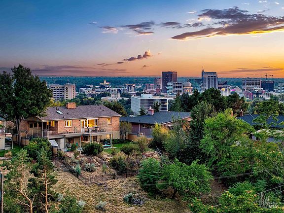 Welcome home to this North End mid-century ranch with 360-degree views of downtown Boise, the Owyhees, and Shafer Butte. This all-brick home sits in the lower Foothills, minutes from downtown, located on a friendly cul-de-sac that is one of Boise’s best kept secrets! Thoughtfully updated, this home has modern upgrades without sacrificing the midcentury vibe. Remodeled bathrooms, kitchen. expansive upper-level wrap-around Trex deck with covered dining areas. Original features include restored blonde oak floors, a local quarry stone hearth, and a double-sided fireplace in the living and dining rooms. You appreciate the main level living and walk out basement. Too many features to mention. Come see to believe. Don’t miss out on this rare find!