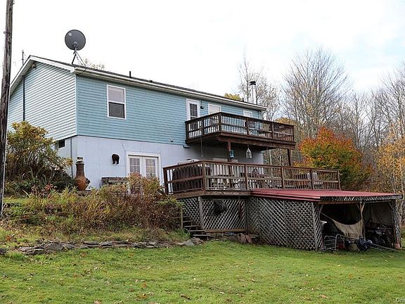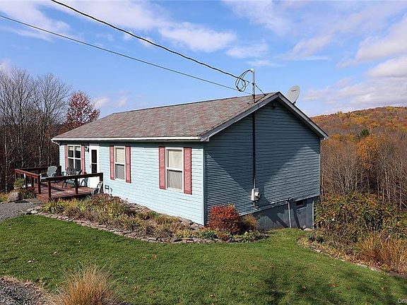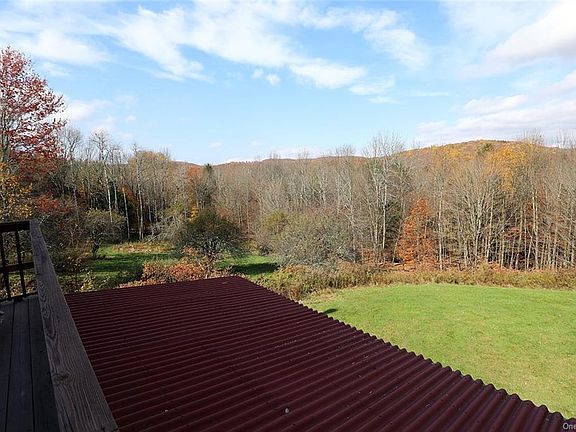 Sweeping mountain views and stream frontage from this 3 BR ranch home on 13.89 acres. Built in 1992, and coming furnished (most furniture included!) there has been much love and care built into this home and property. From the main level--walk out onto an spacious balcony to enjoy the view. Here you will find an eat-in kitchen, living room, 3 BRs and 1 bath. Downstairs, the walk-out basement has 9 ft ceilings, is partially finished with 2 rooms consisting of 480 sq.ft (the larger room has a woodstove), the other half is a workshop, a 1/2 bath, the double doors to the outside allows ATV's into the space. Exit this level onto a sprawling 16x36 deck overlooking a large yard and mature apple orchard. The majority of the land is wooded, and at the end of the tract is the Hankins Creek, a nice trout stream. With room to roam around on this property-enjoy the outdoor sports of the Catskills. Sited on a quiet town road, it's a prime location not far from Callicoon and the Delaware River.