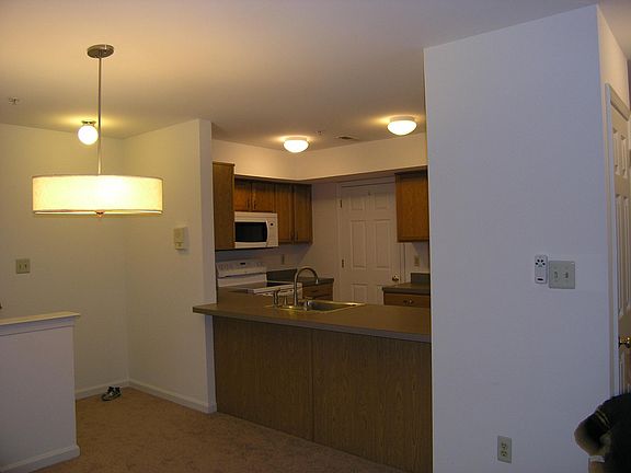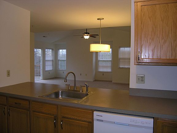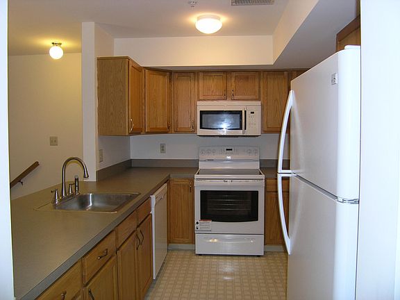Second floor immense condo (1326 s.f.) with vaulted ceilings, three bedrooms, two full baths, and fireplace. END unit flooded with sunlight. Great room opens to cherry kitchen with smooth top range, fridge, dishwasher. Full size washer and dryer in adjacent laundry room. Master bedroom with walkin closet and private full bath. Two additional bedrooms and full hall bath. Available March 7, 2023. Broker listed. Call to schedule appointment. (interior photos of similar property) Owner pays association dues which covers lawn care, snow removal, trash and recycle removal