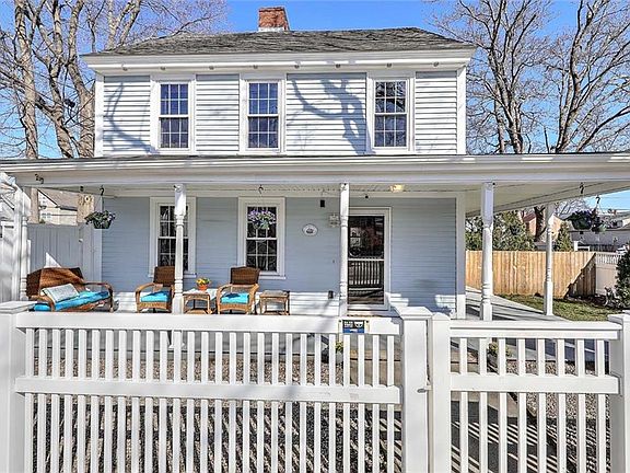 Welcome to the Jeremiah Brown House, a c.1793 Colonial-half house that captures the charm of early New England architecture with its classic clapboard exterior, off-center chimney and wraparound porch. This beautifully maintained home is located in the heart of Warren’s Historic Waterfront District, set on a rare dble lot that backs up to Union Street, offering both space and privacy. The home features HDWD FLRS throughout, 3 FP that includes a pellet stove in the DR for cozy winter nights. An addl. room was formerly a DR w/built in china cabinet which now serves as an OFF or 1st Fl BR. The 2nd fl includes 2 BR, a FBTH, and a LDRY RM. Also, it offers a unique large family/sitting room, a loft with exposed beams on the 3rd fl adding dramatic character and flexible living space. Step outside to a private, fenced yard w/pergola for grilling & outdoor entertaining, and enjoy the convenience of a heated/ac garage/workshop and 2 parking spaces. Situated in the VB zone, this home offers a wide range of potential uses—from residential living to a creative business venture. Take a short stroll to Burr’s Hill Park, Warren Town Beach, the waterfront walkway, and the East Bay Bike Path. Surrounded by local shops, award-winning restaurants, and galleries, this home offers small-town charm with big lifestyle perks. Only 15 minutes to PVD, 30 to NPT, and an hr to Boston or Cape Cod, this is more than a home—it's a piece of Rhode Island history, ready for its next chapter.