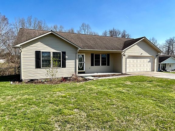 Great opportunity to live in an established neighborhood on a dead end street in the Bush community less than five miles from London city limits. The vinyl, one level ranch is situated on a lovely .83 acre lot with large rear yard with chain link fence & 12X20 storage building. This comfortable home offers a formal entry, formal dining, large kitchen with extensive cabinetry, pantries & desk as well as dishwasher, electric range, microwave & side-by-side refrigerator, separate utility room, 13.5X21 living room with vaulted ceiling, primary bedroom with ensuite bath, two guest bedrooms, guest bath & powder room. Flooring is all hardwood, tile and carpet only in bedrooms. Crown molding throughout, security system, central heating & air conditioning, blinds, 5X17 covered front porch, 2 car attached garage with shelving & unfinished basement room perfect for storage or workshop.