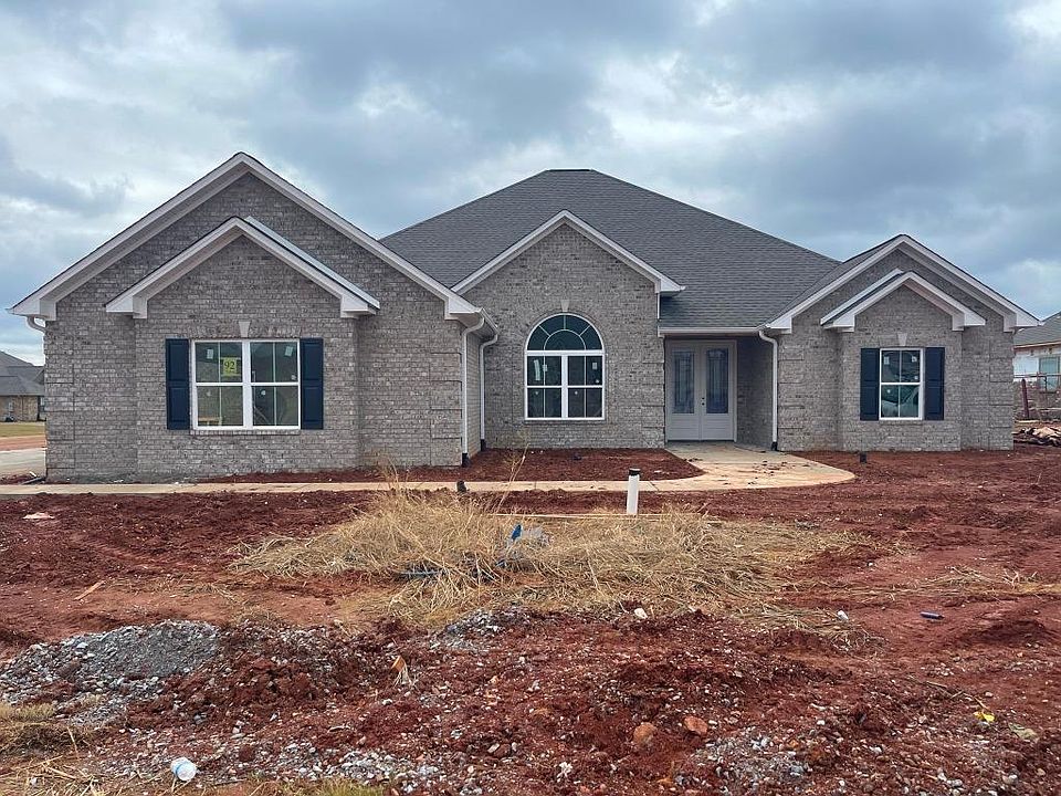 All brick Hamilton Plan B is an open plan with a 3 car side entry garage backed by a 2-10 home warranty.. Home has 4 bedrooms, 3 baths. Home has wood plus flooring (Mohawk Revwood) in all living areas and bedrooms. Great Room features 12' ceiling, extensive trim, gas-log fireplace with upgraded fireplace treatment, wood plus flooring, floor outlet, recessed lights and ceiling fan. Dining room has 12' coffered ceiling, wood plus flooring, extensive trim including shadow box under chair rail. Kitchen includes 12' ceiling, custom cabinetry and granite counter tops, large island with extra storage and countertop seating, stainless appliances including dishwasher, gas cooktop, wall oven and wall microwave, tile backsplash, wood plus flooring, recessed lighting, and huge walk-in pantry. Breakfast has 12' ceiling, wood plus flooring. Master bedroom has 11' double tray ceiling, wood plus flooring, recessed lighting, extensive trim and ceiling fan. Master bath has 11' ceilings, glamour tub, large tile shower with two shower heads and rimless shower door, separate toilet area, double vanity with granite countertops and large walk-in closet. The additional bedrooms have 9' ceilings, wood plus flooring, ceiling fans and crown molding. The additional baths have tile flooring and granite counter tops. Laundry has 9' ceiling, custom cabinet, and tile flooring. Home has large rear covered porch with ceiling fan as well as additional covered porch behind the breakfast area. Optional Kitchen h