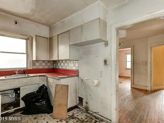 Previously renovated but now a shell. AC units gone, appliances gone, hot water heater gone, some pipes missing, utilities off, etc. However, some or all of the ductwork is there, the furnace is there, wood floors there, wonderful knotty pine wainscoting in lower level family room, fun flat yard and huge garage. Sold AS-IS. Cash only.