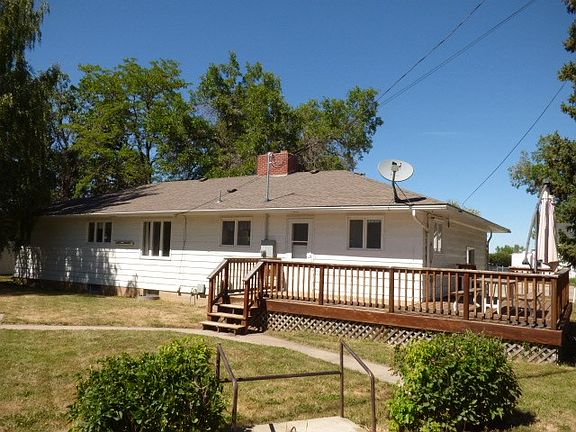 This is a great ranch style home with lots of space to spread out. Breakfast nook for the morning and a dining room for company. Large rec room with a bar set up. Basement also has a fruit room, gun room and 2 more sleeping rooms. Large 2 car detached 2 car garage and a large deck. There is also a nice Kennel and vinyl privacy fence. Just about the only house in town that faces due North! Close to park and school.