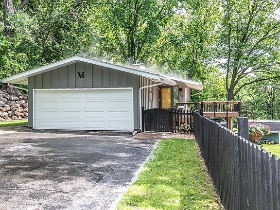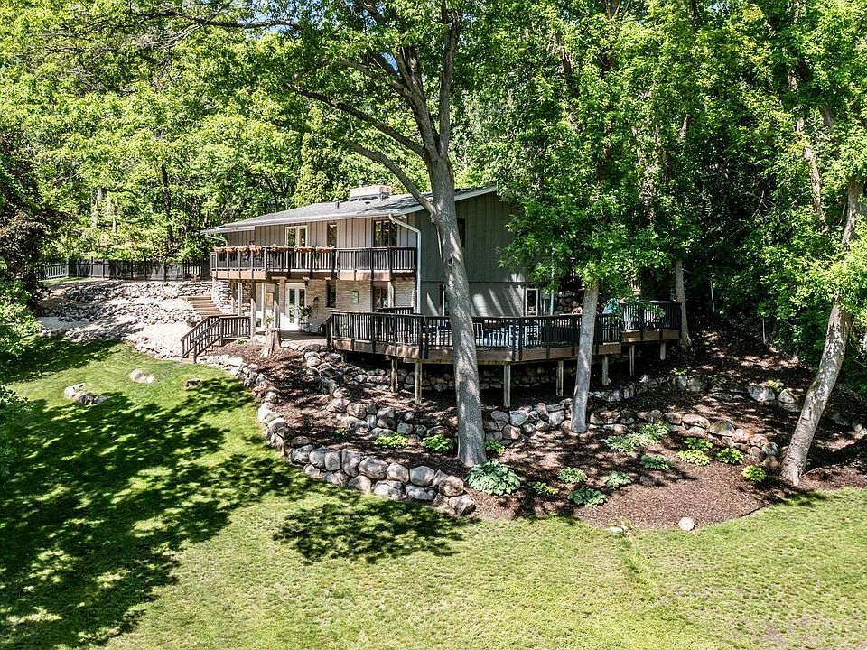 walking distance to the Mississippi river. Three bedrooms on the main level with vaulted ceilings and gleaming hardwood floors. Updated stainless steel appliances in the kitchen that is glowing with natural light. Two spacious bedrooms and a newly updated bathroom on the lower level. Step outside and entertain friends and family with dual wrap-around deck spaces overlooking the picturesque backyard. Meticulous landscaping, fresh paint on the deck, new mulch, and a large shed for all your outdoor storage needs. Several updates have been completed since last sale including new A/C unit, new bathtub in main floor bath, new shower in lower bath, and new landscape rock. Enjoy the tranquility of this secluded lot, conveniently close to schools, shopping, dining, and major highways.