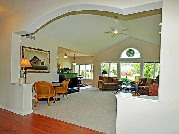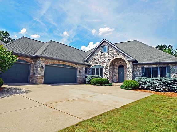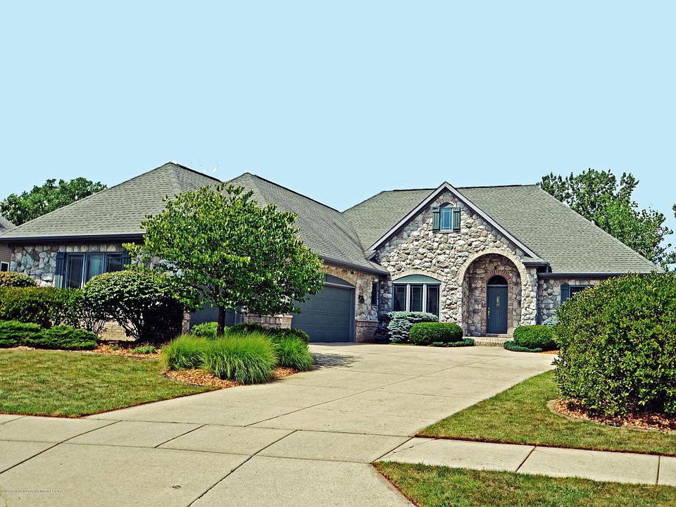 Truly magnificent ranch in East Lansing. Stone front and Brick. Front faces Cul-de-sac and as well as nature preserve. House custom built for current owner. The foyer opens to a great room with cathedral ceilings and a stone fireplace. A wall of windows across the back show a well maintained lawn and deck. A modern gourmet kitchen with breakfast counter open to formal dining. Offers a split bedroom plan with master bedroom on one end of the house with family, guest rooms and bath on the other end of the house. 3 car garage with extra supports in construction. Full basement with high ceilings. Extra electric ampage in the house for all possible needs. Storage and closets everywhere. First floor laundry. Near shopping and The Northern Tier Trail. Wheel chair accessible with 3ft wide doors.