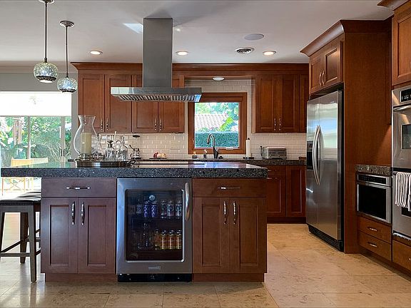 NOTE: Showings are happening today, 12/1 with no showings Thursday-Friday, 12/2-3. If needed, additional showings will be available Saturday. Please call or text for appointments. ————— Lots of custom features in this fully remodeled open concept 4/2 home. Whole house updates include wood and stone flooring, custom baseboards and moulding, two panel solid core interior doors, whole house sound wiring/speakers (including pool area), recessed LED lighting, custom shutters, drapes & rods. Kitchen has large island with oversized quartz countertops, Kitchenaid appliances (including beverage refrigerator) and Thermador slide out microwave. Custom made vanity in master bath has unique built in toilet controls and toilet paper and tissue dispensers. Custom framed Robern medicine chest has internal electric outlets and heated defog mirror. Fixtures and features include; Kohler wall faucet, Hansgrohe shower panel, Caroma wallmount toilet, and Restoration Hardware accessories. Guest bath has oversized Robern medicine chest, Hubbardton Forge lighting, and Kohler Finial fixtures and accessories. A full ceiling height shower curtain for the slightly oversized tub. Stone tile surround in shower/tub area. Lots of counter space in the Newly remodeled laundry room, includes cabinets for whole house audio wiring and WiFi, food pantry, and cleaning equipment. Private backyard with 6.5’ stone capped and ivy covered wall, large/deep pool, cast stone deck, and tropical plants surrounding the area. New outdoor kitchen has large stainless steel grill, two burner side unit, and sink. Landscaping includes mature plants, many hard-scrape items, low voltage lighting, built in screens, and significant custom gates. Garage has been outfitted with lots of cabinets and shelving, and houses the Stiebel Elton tankless water heater. In the last 7+ years, the A/C has been replaced along with updated ducting, a new shingle roof, insulation removed and replaced. In the the highly desirable Del Roy Park Neighborhood, this home is walking distance to Maitland City tennis & pickle ball courts, Publix and a host of restaurants; including Luke’s, Antonio’s, Teak, Sanford Brewing, and a new food hall under construction.