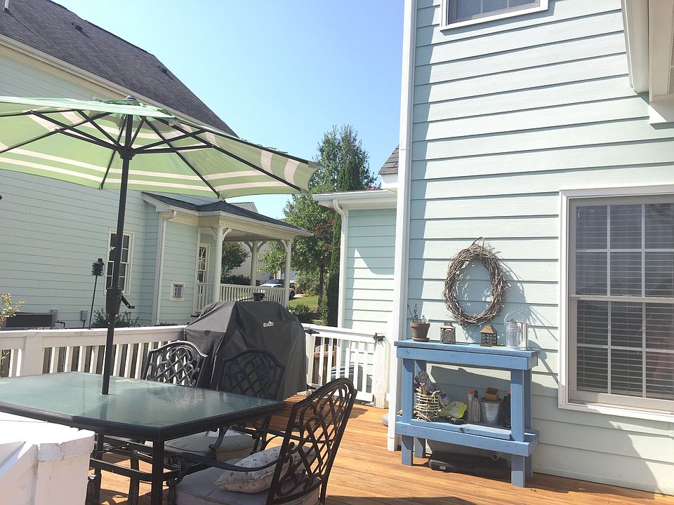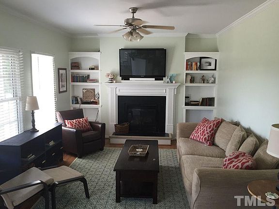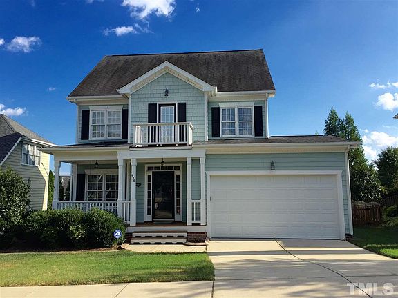 Adorable house in golf course community with pool and tennis courts. Recently added hardwoods throughout entire first floor. Large screen porch and deck addition. Finished third floor/optional 4th bedroom. Family room features built-in shelving and FP w/ gas logs. Large flat back yard, perfect for kids. Enjoy peaceful evenings on the front porch swing. Great Wake County schools, close to 540, Triangle Town Center, restaurants and RTP.