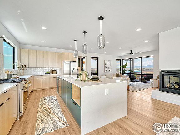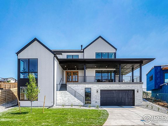 Custom Home By Wood Brothers Homes and professionally designed by award winning architects Godden/Sudik. Bring your buyers looking for incredible views! Wake up to unobstructed mountain views from the primary bedroom or enjoy them from the kitchen as you get your day started. This home will be move in ready by end of July. Marvin Black Fiber glass windows, Delta Trinsic Collection plumbing trims, custom lighting by Fusion light and design, all cabinetry features soft close drawers and doors, waterfall quartz counter tops, Monogram appliance package, pantry and back kitchen area. Oversized 3 car garage, 2 laundry room hookups, 6 bedrooms and 5 baths make this home standout. Large wrap around deck on the front to capture mountain views and breathtaking sunsets. Cul de sac location backing to city open space trail that winds through Louisville, easy access to old town. Primary bathroom features heated floors, free standing soaking tub. 400-amp panel, 2 electric heat pumps, 80-gal hybrid electric water heater and EV charger ready garage.