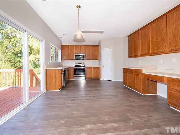 Beautiful home in a great family oriented neighborhood in Garner. 3 bedrooms WITH A BONUS/LOFT AREA! New Paint, New flooring and bathroom upgrades with hard wood floors in the foyer. Open concept kitchen layout with stainless steel appliances. Sliding glass door off the kitchen leads to a great deck to overlook the backyard. Master bedroom has dual vanity with soaker tub and huge WIC. COME SEE IT TODAY, priced to sell!