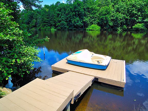 Prepare to be impressed! This home is stunning and the attention to detail is incredible. So much to offer and so much to talk about. A great home for entertaining. Main level offers a formal living room/office, formal dining room, great room with fireplace/gas logs and built-ins. Large kitchen has solid surface counter tops, work island and stainless appliances. Huge master with spa like bath. Upper level has 3 guest bedrooms, 2 full baths and a bonus room. Lower level has a full kitchen, family room with gorgeous built-ins, bedroom, full bath, hobby/craft room and flex space. Plantation shutters, full irrigation, floating dock. Huge deck and covered patio will be your place to roost in order to watch all the wildlife on the lake! Transferable lifetime warranty on HVAC that includes labor!